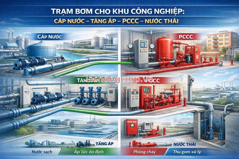 Trạm bơm cho khu công nghiệp: cấp nước – tăng áp – PCCC – nước thải