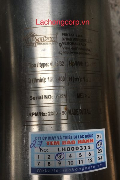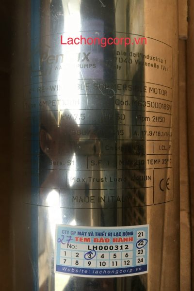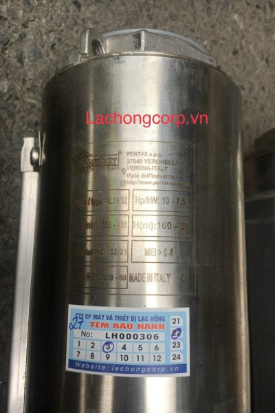 Bơm chìm giếng khoan Pentax 4L 16/23. Máy bơm chìm giếng khoan Pentax nhập khẩu trực tiếp Ý 100% chính hãng chất lượng cao. Bơm giếng khoan Pentax model 4L 16/23 công suất 5.5kw nhập khẩu chính hãng, giá ưu đãi.