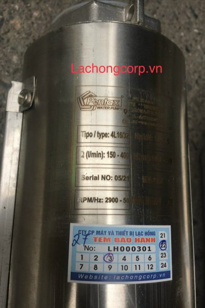 Bơm chìm giếng khoan Pentax 4L 16/23. Máy bơm nước giếng khoan Pentax là 1 trong các thiết bị được con người ứng dụng rất nhiều hiện nay. Sản phẩm với khả năng khai thác, cung cấp nước sạch với lưu lượng cao và ổn định. Đáp ứng được yêu cầu sử dụng máy bơm của nhiều khách hàng. Sản phẩm bơm chìm giếng khoan Pentax model 4L 16/23 là máy bơm có công suất làm việc nhỏ.