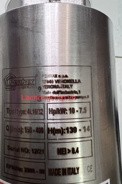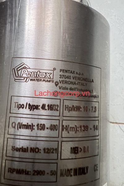 Bơm chìm giếng khoan Pentax 4L 16/32. Máy bơm chìm giếng khoan Pentax nhập khẩu trực tiếp Ý 100% chính hãng chất lượng cao. Bơm giếng khoan Pentax model 4L 16/32 công suất 7.5kw nhập khẩu chính hãng, giá ưu đãi.