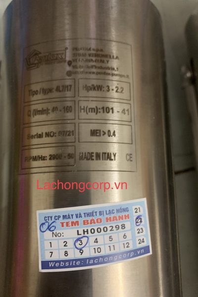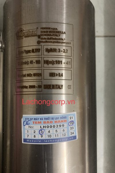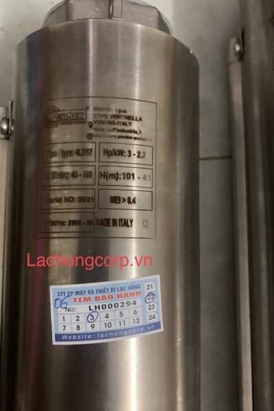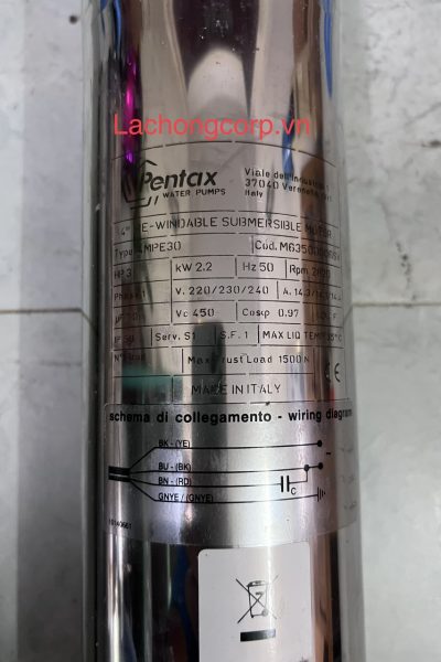 Bơm chìm giếng khoan Pentax 4L 7/17. Máy bơm chìm giếng khoan Pentax nhập khẩu trực tiếp Ý 100% chính hãng chất lượng cao. Bơm giếng khoan Pentax model 4L 7/17 công suất 2.2kw nhập khẩu chính hãng, giá ưu đãi.