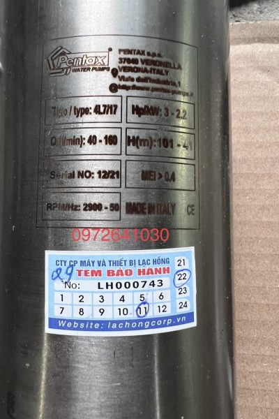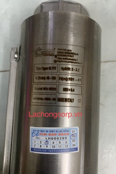 Bơm chìm giếng khoan Pentax 4L 7/17. Máy bơm nước giếng khoan Pentax là 1 trong các thiết bị được con người ứng dụng rất nhiều hiện nay. Sản phẩm với khả năng khai thác, cung cấp nước sạch với lưu lượng cao và ổn định. Đáp ứng được yêu cầu sử dụng máy bơm của nhiều khách hàng. Sản phẩm bơm chìm giếng khoan Pentax model 4L 7/17 là máy bơm có công suất làm việc nhỏ.