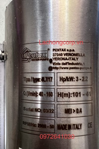 Link sản phẩm từ website của hãng Pentax: https://www.pentax-pumps.it/pentax/en/product/4l/