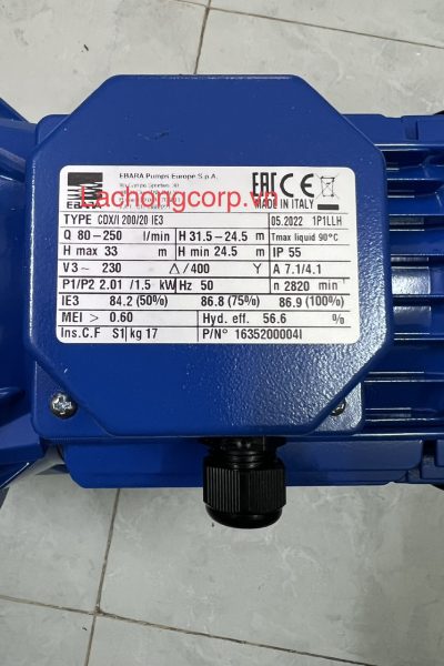 - Công suất P= 1.5Kw/2HP