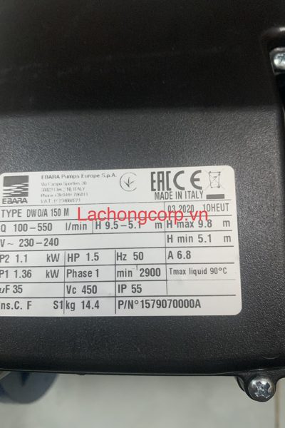 Máy bơm bùn đặt cạn Ebara DWO/A 150M