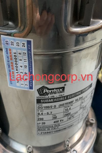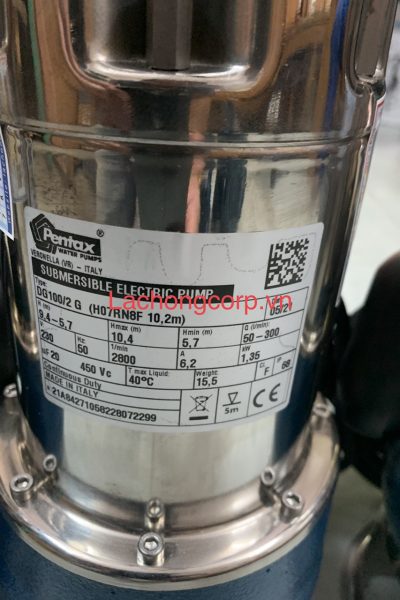 Máy bơm chìm nước thải Pentax DGT 80/2. Máy bơm chìm nước thải Pentax DG công suất nhỏ 1.4 HP. Được sử dụng bơm hút, xử lý các loại chất thải, nước thải có chất rắn lơ lửng trong dân dụng, gia đình,…