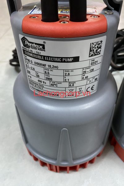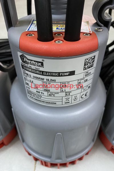 Máy bơm chìm nước thải Pentax DP 40 G 0.25 HP – 220V là loại máy bơm chìm hút nước thải của Italy. Máy bơm có công suất làm việc nhỏ là 0,25hp. Sản phẩm sử dụng điện áp 1 pha với hiệu điện thế 220V. Máy bơm có lưu lượng( khối lượng nước được bơm lên) dao động trong khoảng 20 ÷ 80 lít / phút. Với cột áp của máy là 5.7 ÷ 2.5 mét. Có nghĩa là khi lưu lượn bơm đạt tối thiểu 20 lít/ phút thì cột áp đạt max 5.7 mét và ngược lại. Khi lưu lượng đạt max là 80 lít/ phút thì cột áp min 2.5 mét.