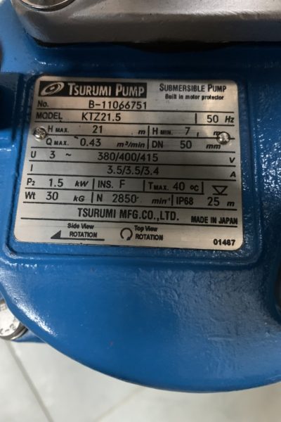 - Tên sản phẩm: Máy bơm nước thải Tsurumi KTZ21.5