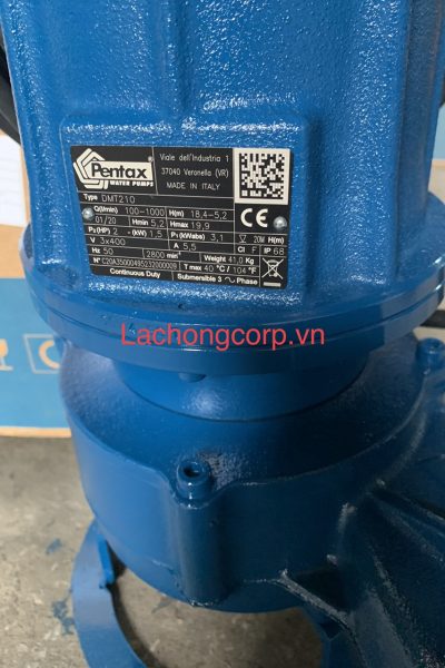 Máy bơm chìm nước thải Pentax DMT1000. Máy bơm chìm nước thải Pentax series DMT là 1 loại máy bơm nước thải được thiết kế kiểu mới, hiện đại. Với thiết kế đặc biệt, được làm bằng gang chắc chắn có độ bền và khả năng chịu tác động cao. Sản phẩm có công suất làm việc là 7.5KW. Sử dụng điện áp công nghiệp 3 pha với hiệu điện năng 380V. Nên máy bơm nước này sẽ được sử dụng phổ biến trong hệ thống xử lý chất thải công nghiệp.
