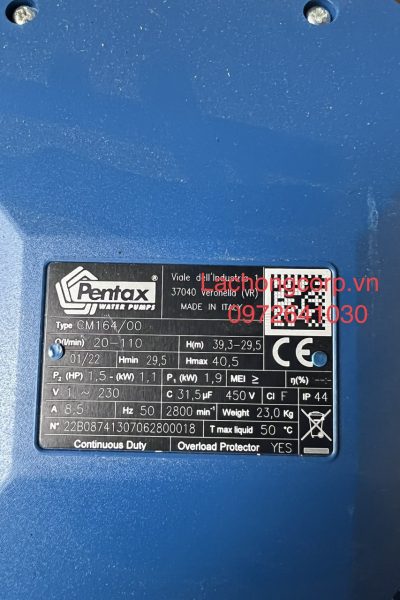 Link sản phẩm từ website của hãng Pentax: https://www.pentax-pumps.it/pentax/en/product/cm/