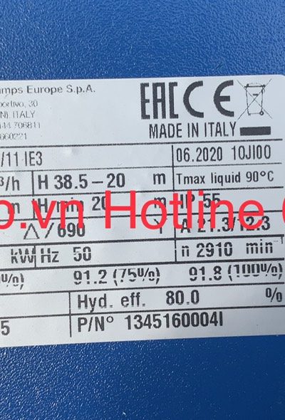 THÔNG SỐ KỸ THUẬT MÁY BƠM EBARA