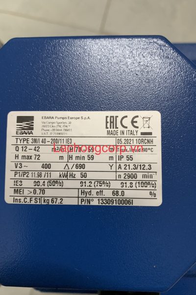 Máy bơm nước Ebara 3M/I 40-200/11 IE3