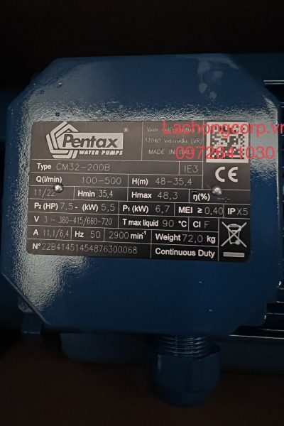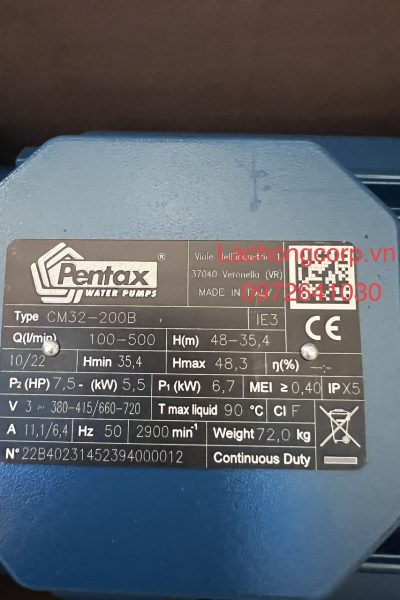 - Pentax – Italy là thương hiệu nổi tiếng toàn cầu trong lĩnh vực bơm nước. Sản phẩm CM32-200B được sản xuất trên dây chuyền hiện đại, tuân thủ tiêu chuẩn nghiêm ngặt, bảo đảm chất lượng ổn định và dịch vụ hậu mãi tốt.